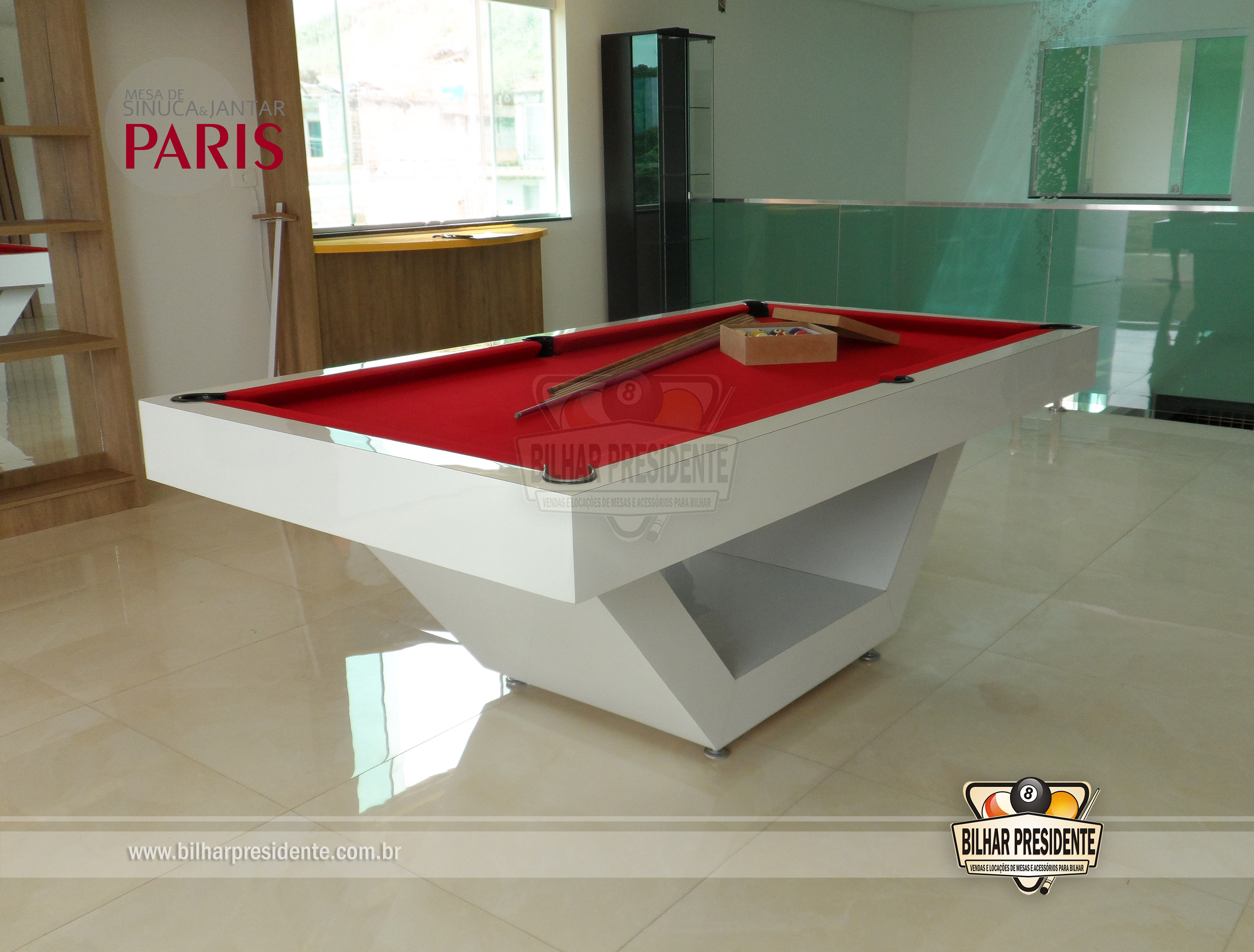 Uma mesa de sinuca que surpreende em cada detalhe.
